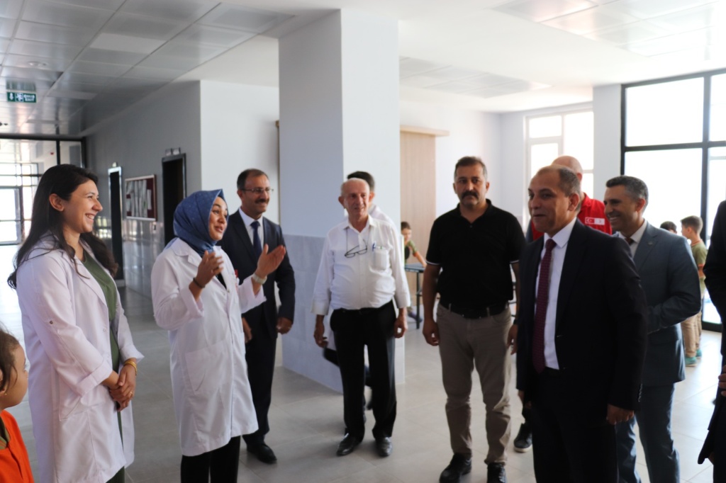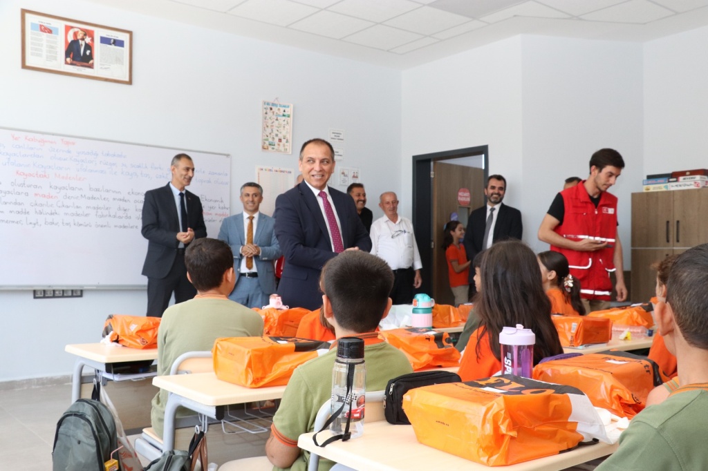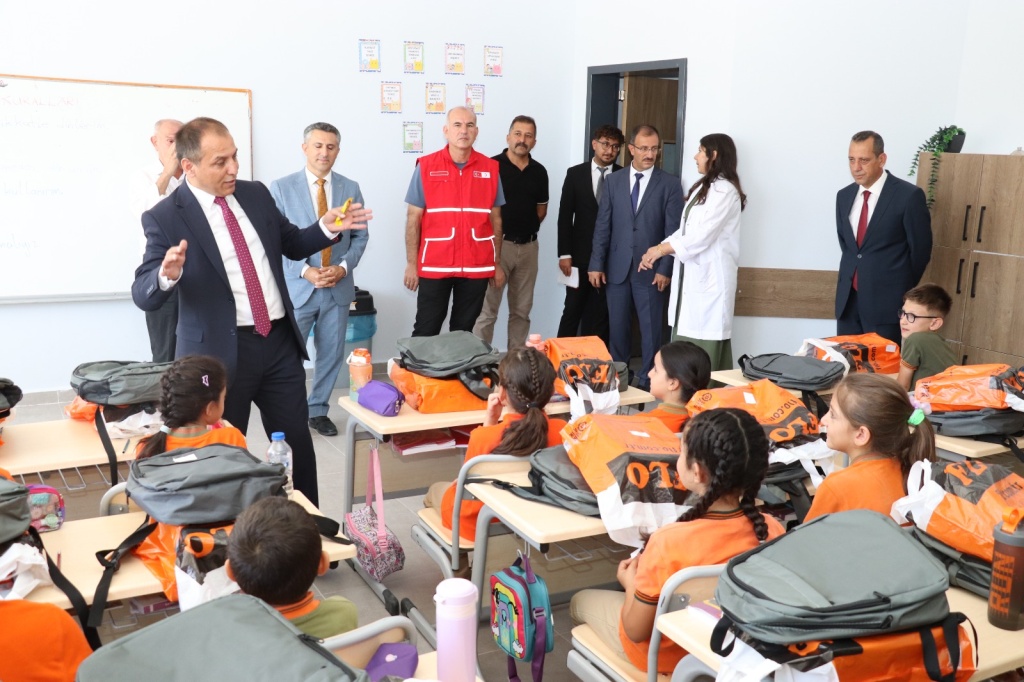İl Milli Eğitim Müdürümüz Erhan BAYDUR ve İlçe Milli Eğitim Müdürümüz Hüseyin MART Beyefendilerin yeni taşıondığımız 24 derslikli okul binamızı ziyaret ettiler. Okulumuzun tüm öğrencilerine içinde kırtasiye malzemesi olan çanta ve ayakkabı hediye ettiler.